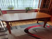 Witam mam na sprzedaż ,duży stół rozkładany wymiary przed rozłożeniem 200\94 wysokość 76 do rozłożenia dodatkowo 2 płyty o wymiarach 50 cm cena 500 ,komoda w połowie szklana narożna cena 300 zł , komoda wymiary 102\50 wysokość 78 cena 200 zł, i krzesła cena 30zł. odbiór kiełpino kartuskie